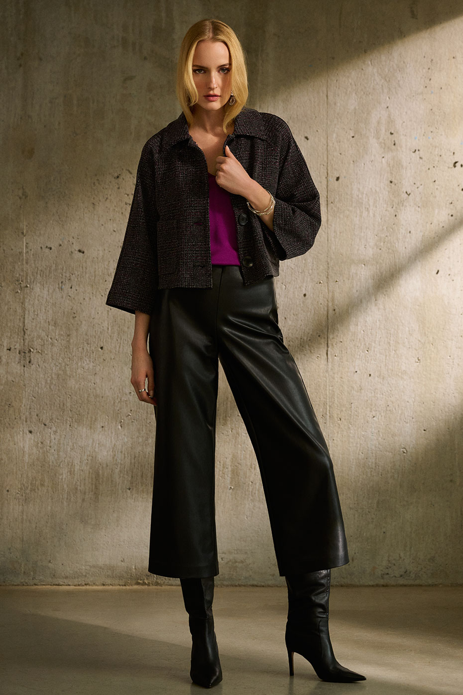 Joseph ribkoff’s aspirational label thrives in over 60. Introducing novelties such as energizing shades of kelly green, violet, tandoori, and opulence;
